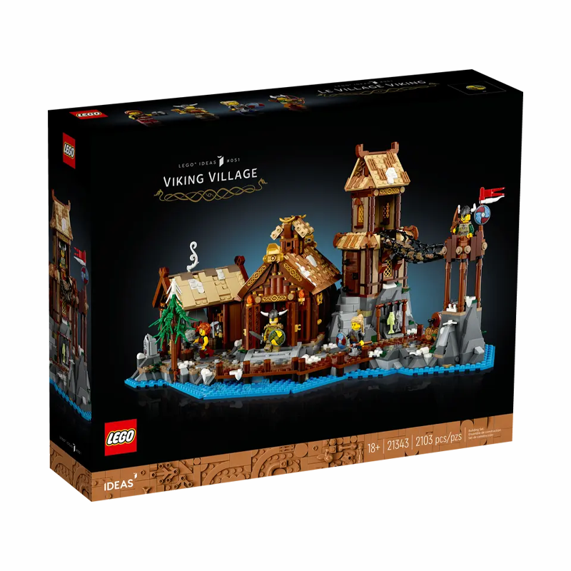 - LEGO® Ideas Viking Village (21343) play-and-display model – Step back in time to the Viking Age as you build this detailed model, with a blacksmith’s smithy, chieftain’s longhouse and a watchtower